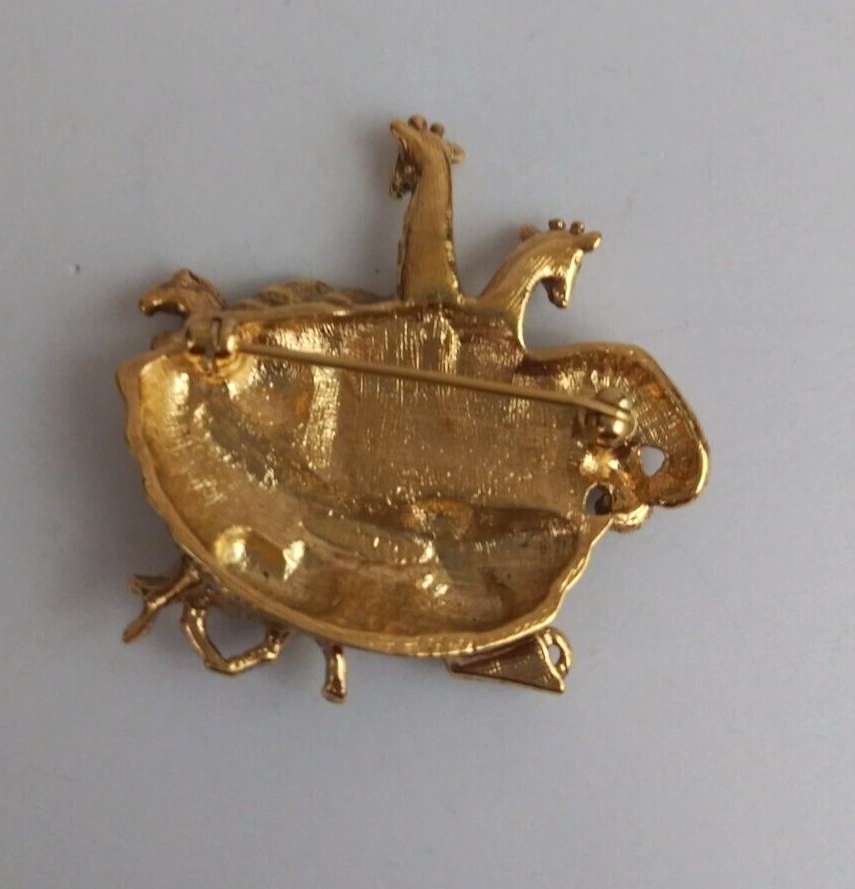 Vintage Noah's Ark Gold Tone Religious Broach Lapel Hat Pin