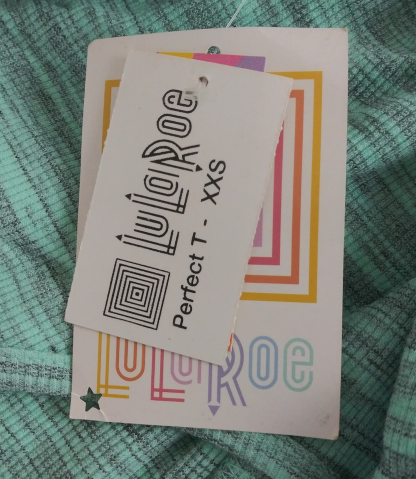 This is for a NWT LuLaRoe Perfect T Mint Green With Gray Size XXS.