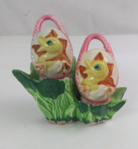 Vintage Baby Chicks Hatching Egg Baskets In Grass Nest Salt & Pepper Shaker Set