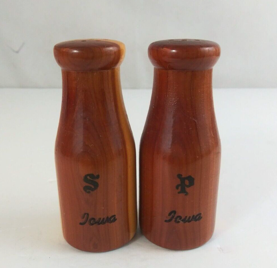 Vintage Wooden Milk Bottle Iowa Souvenir 3.75" Salt & Pepper Shakers