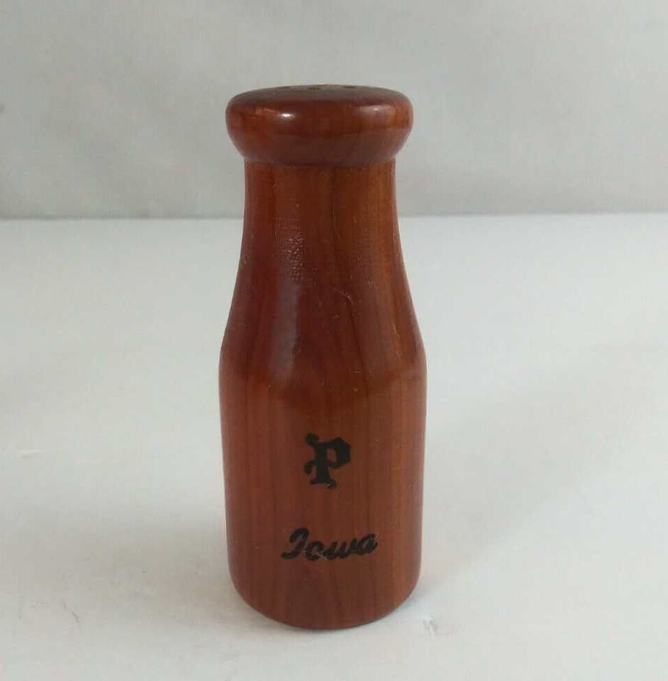 This is for a Vintage Wooden Milk Bottle Iowa Souvenir 3.75" Salt Pepper Shakers.