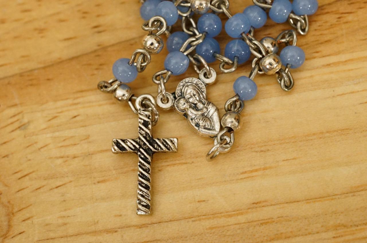 Estate Christian Religious Jewelry Blue Glass Catholic ROSARY Crucifix Cross