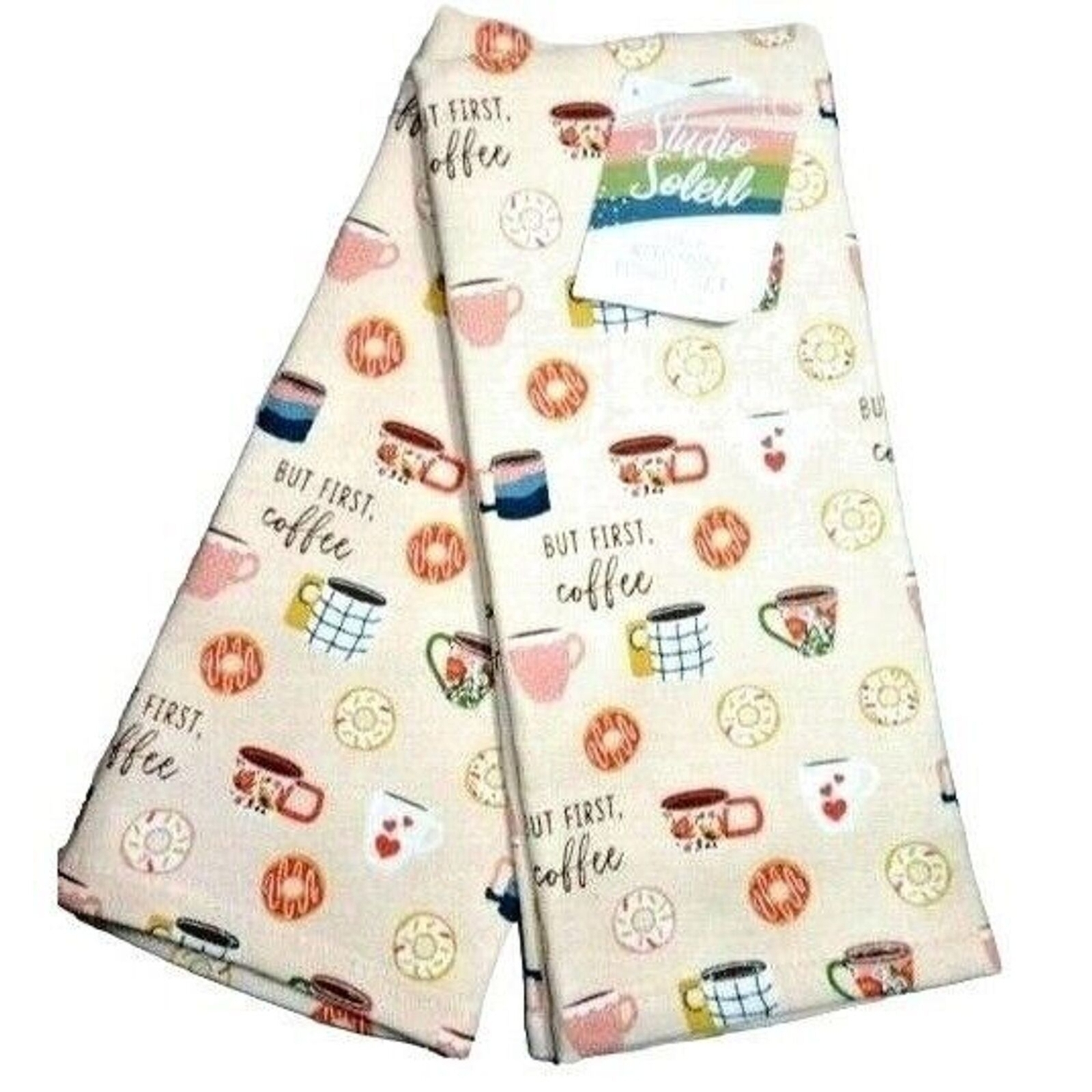 Studio Soleil BUT COFFEE FIRST Cotton Kitchen Tea Towel Terry Doughnuts 2pc Gift