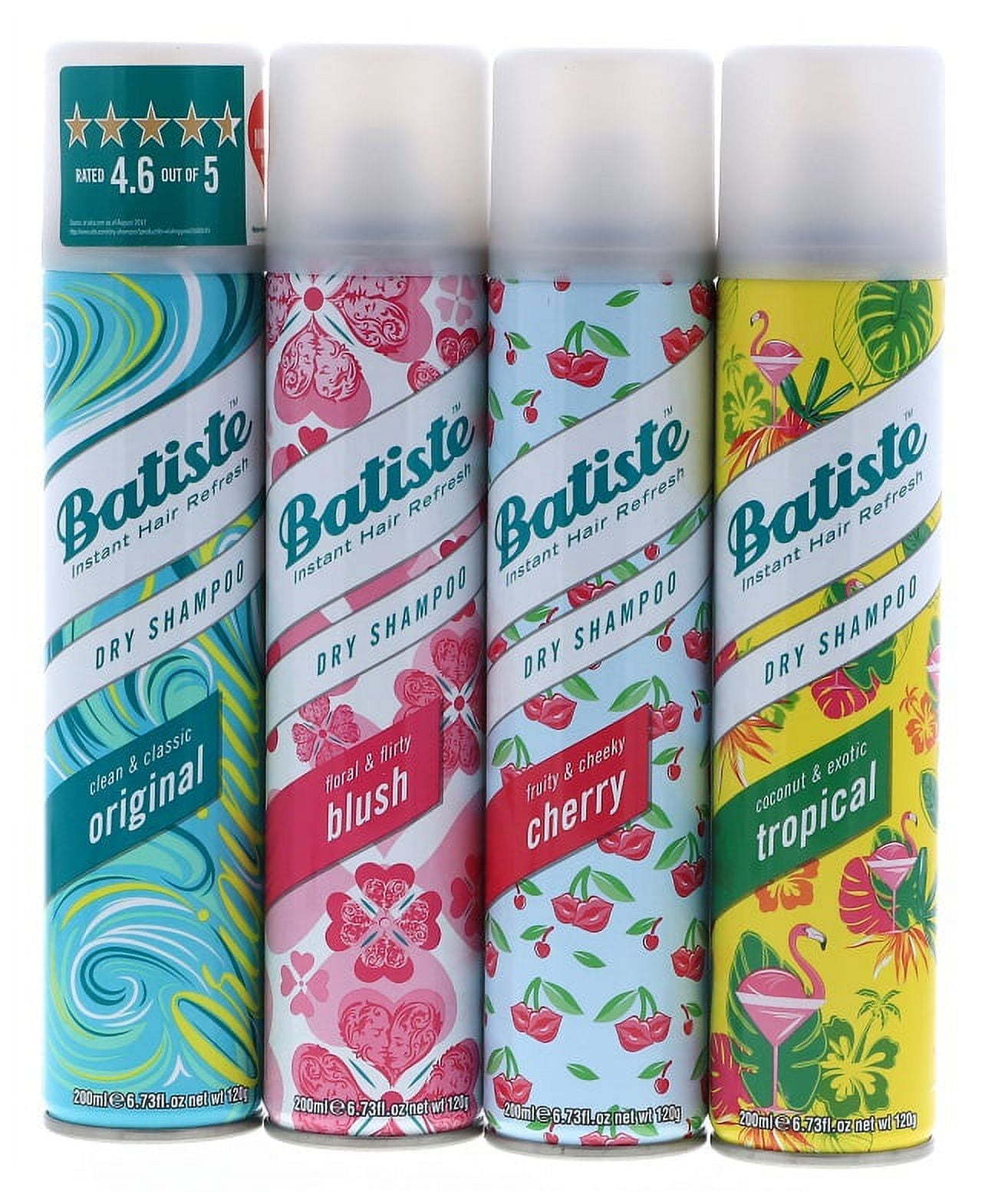 You will receive a variety set of 4 Cans of Batiste Dry Shampoo Sprays (200ml / 6.73FL Oz each X 4)