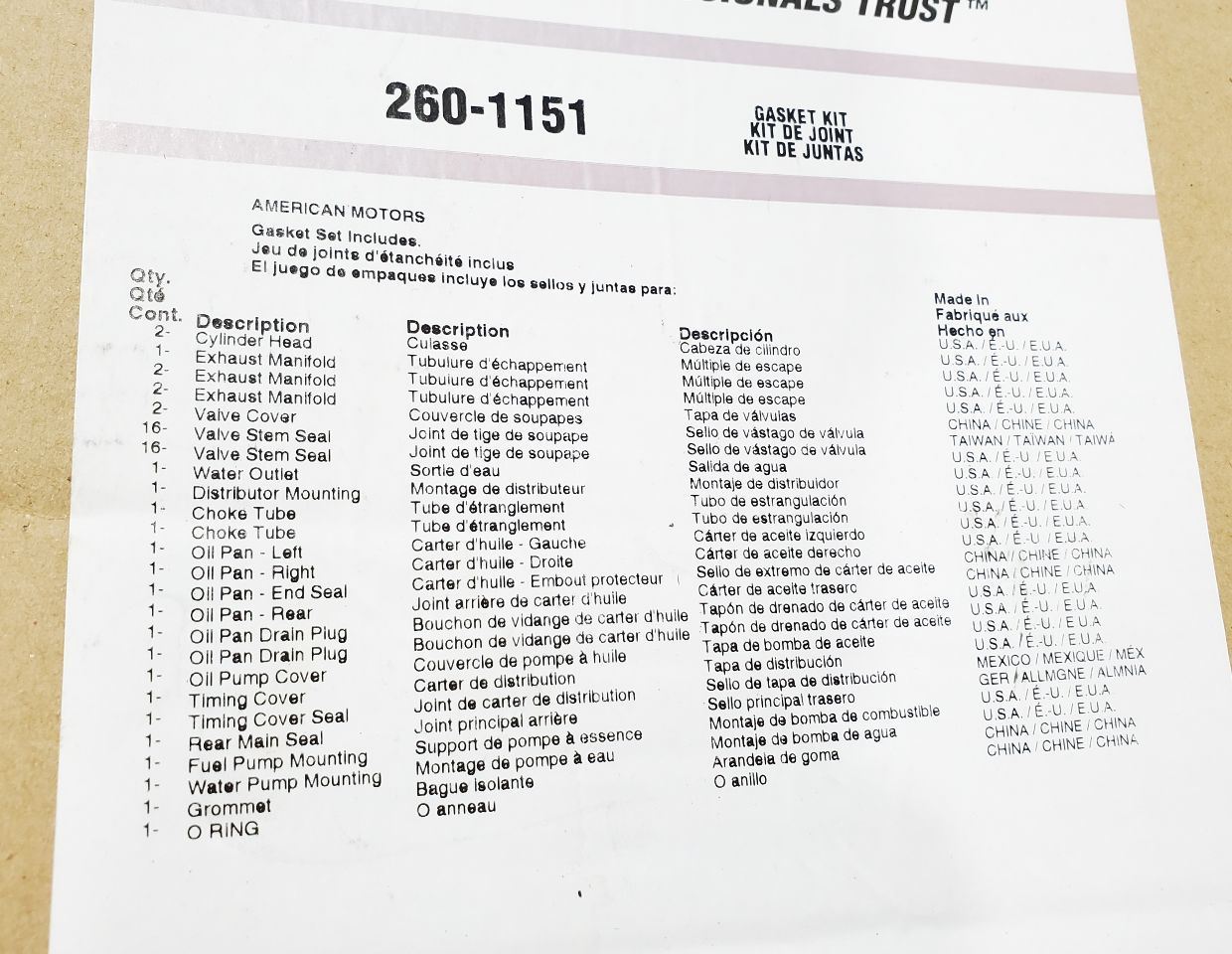 1980 Jeep Wagoneer OEM Complete Gasket V8 Fel-pro 260-1151 |