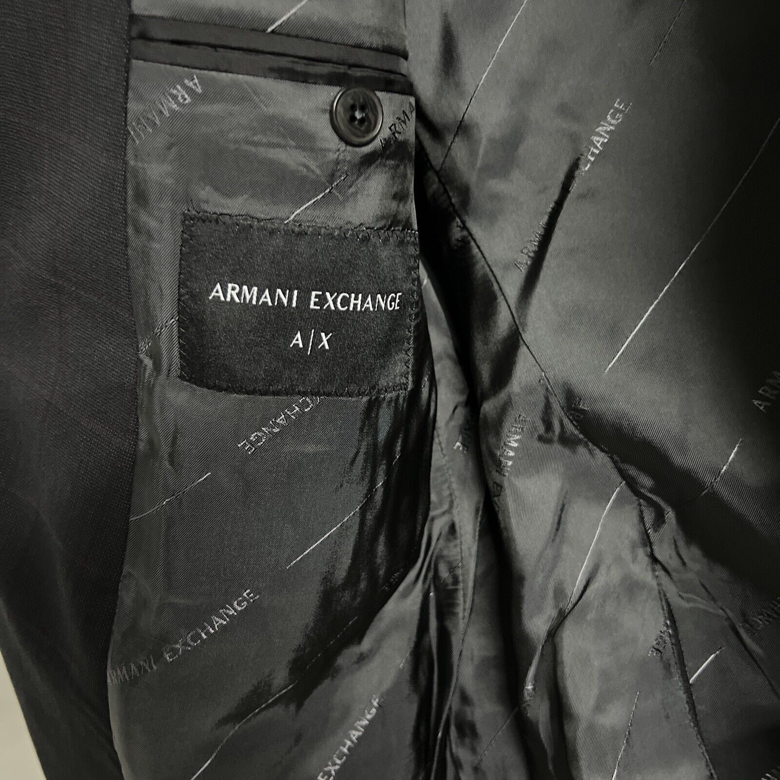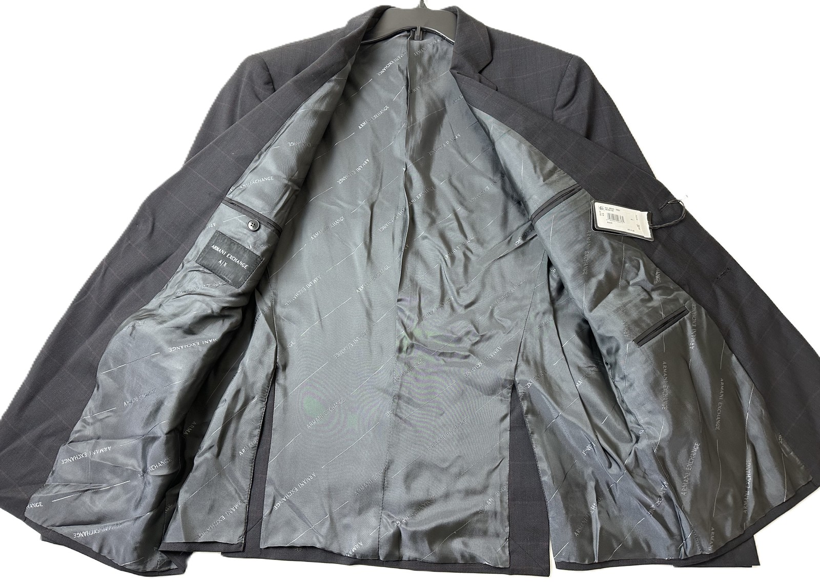 AX Armani Exchange Mens Wool Blazer Grey With Merlot Windowpane 44L