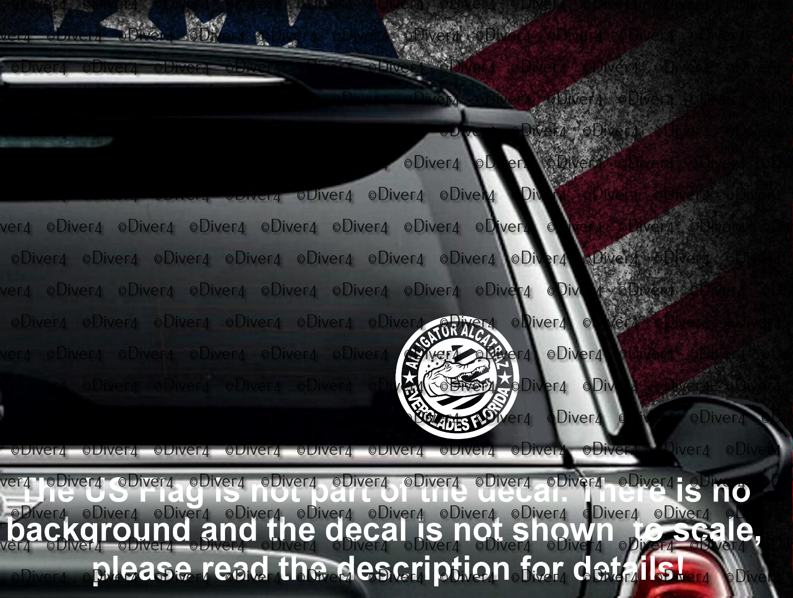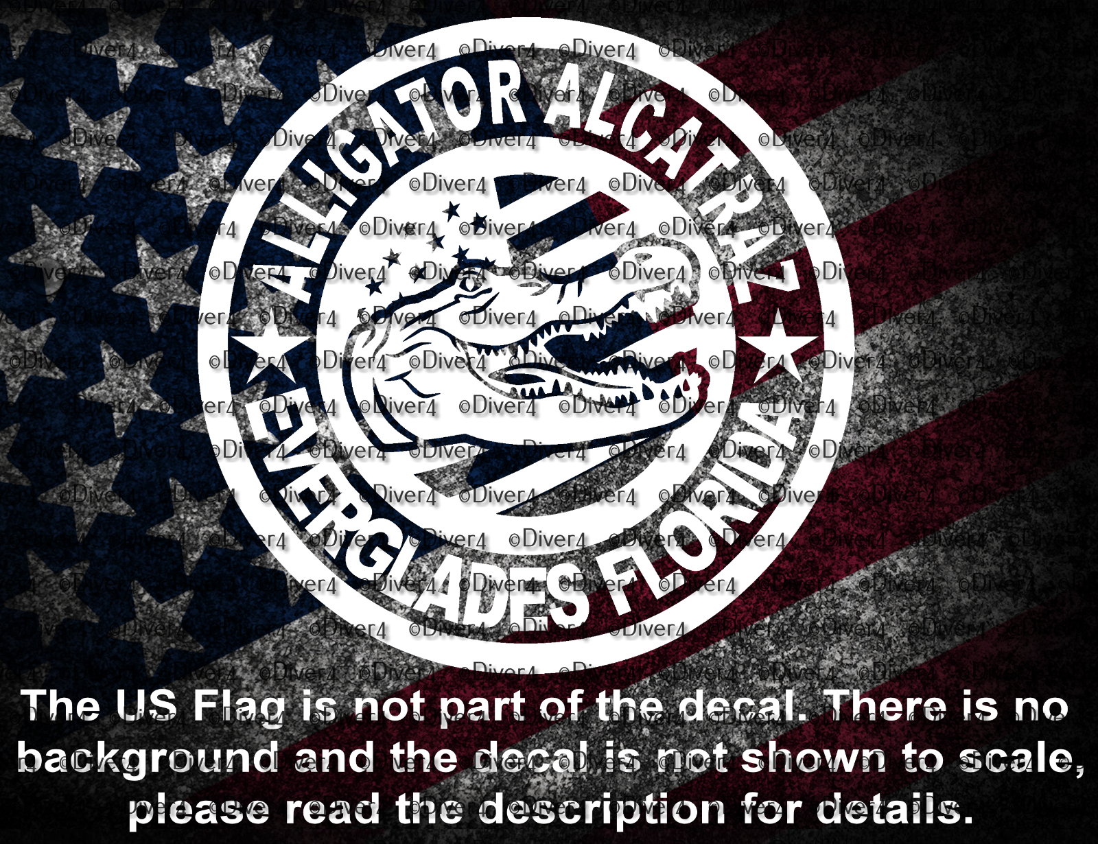 This is a custom Round Alligator Alcatraz with US Flag Funny Cut Vinyl Decal