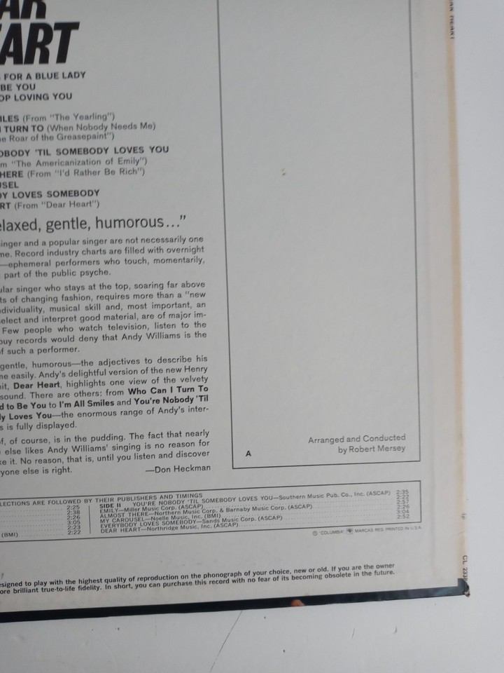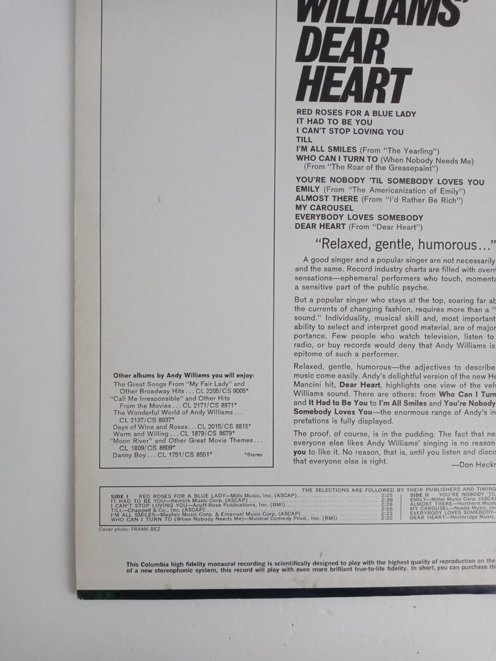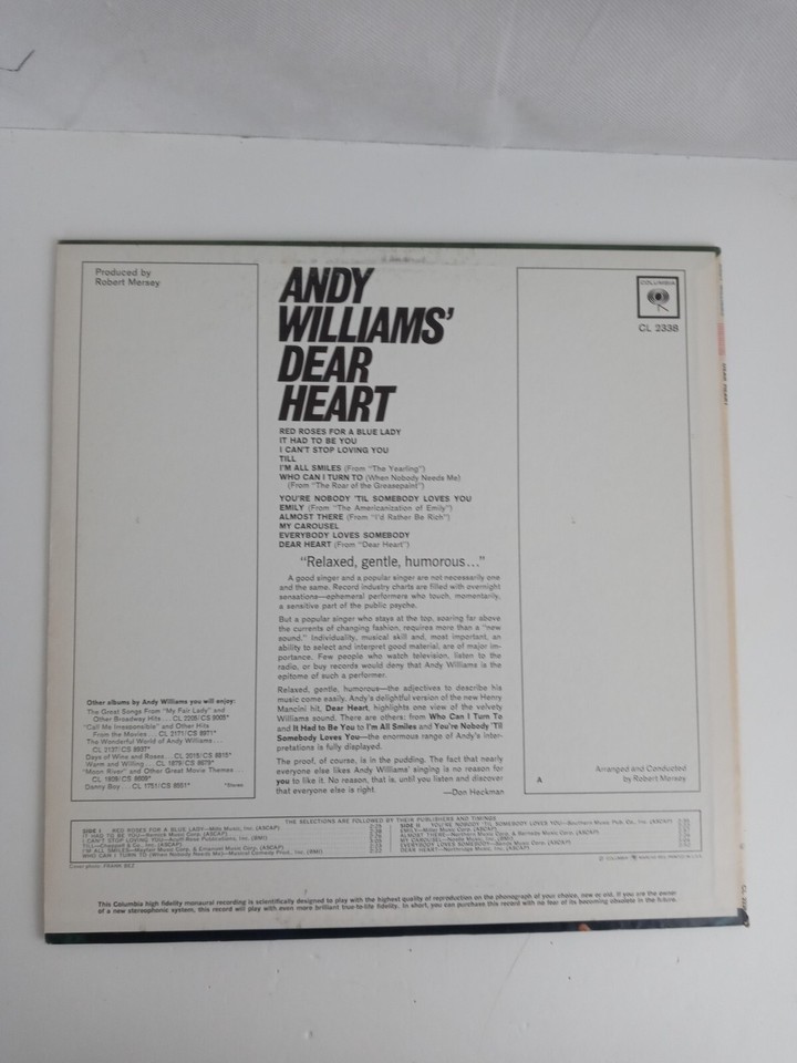 Andy Williams - Dear Heart 12" Record and 49 similar items