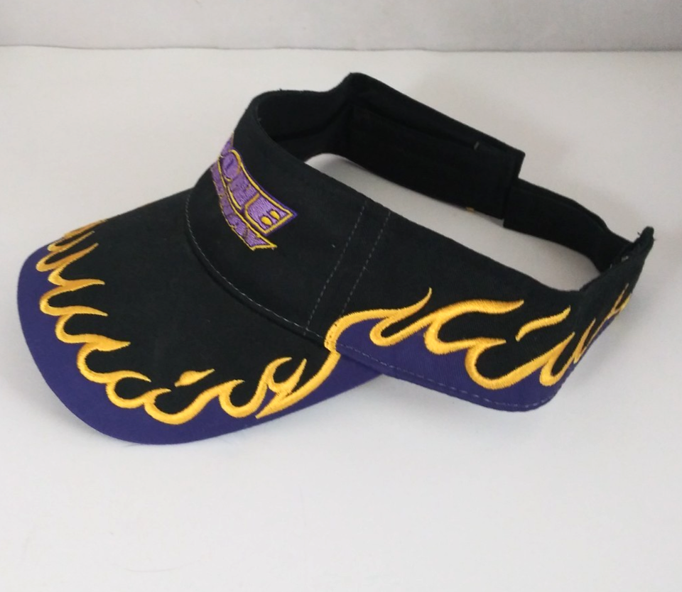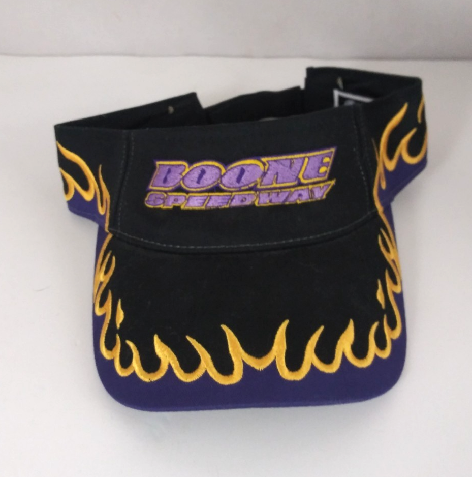 This is for a Boone Speedway Black Purple Embroidered Flames Adjustable Visor Cap.