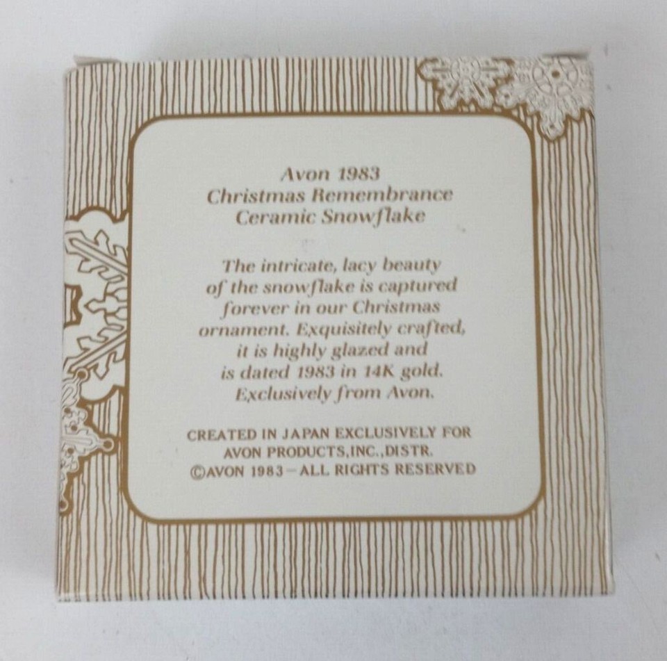 This is for a Vintage Avon 1983 Christmas Remembrance Ceramic Snowflake 14K Gold Made In Japan.