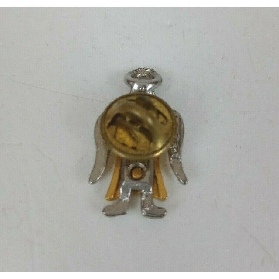Vintage Silver & Gold Tone Angel With Heart On Dress Lapel Hat Pin