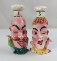 Vtg Anthropomorphic Caricature French Chef Couple Salt & Pepper Shakers Japan