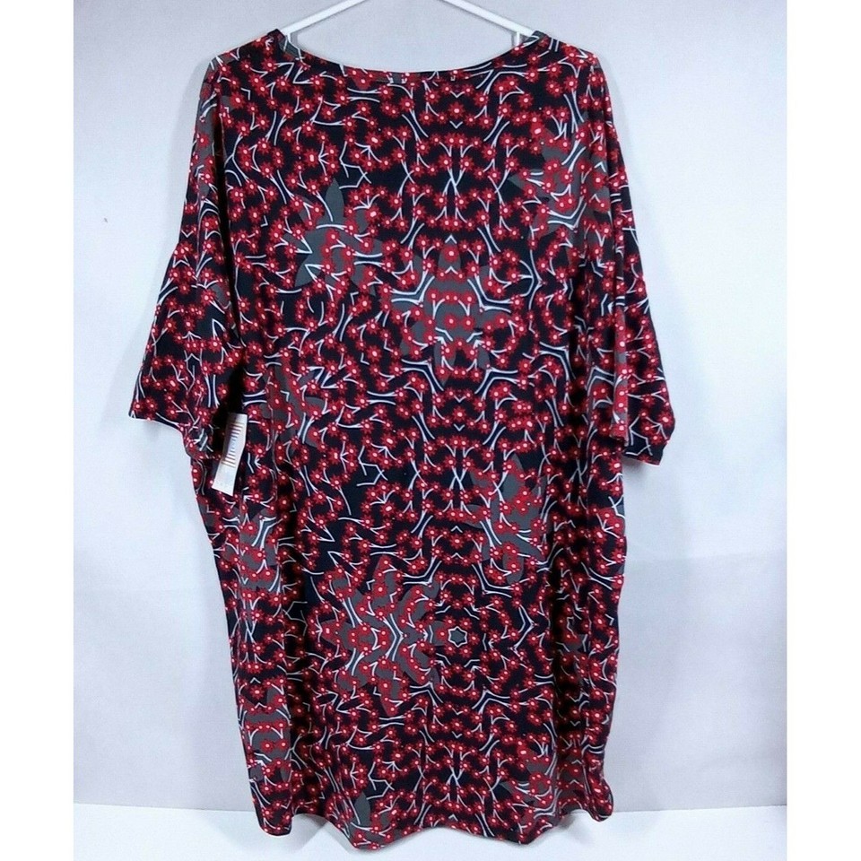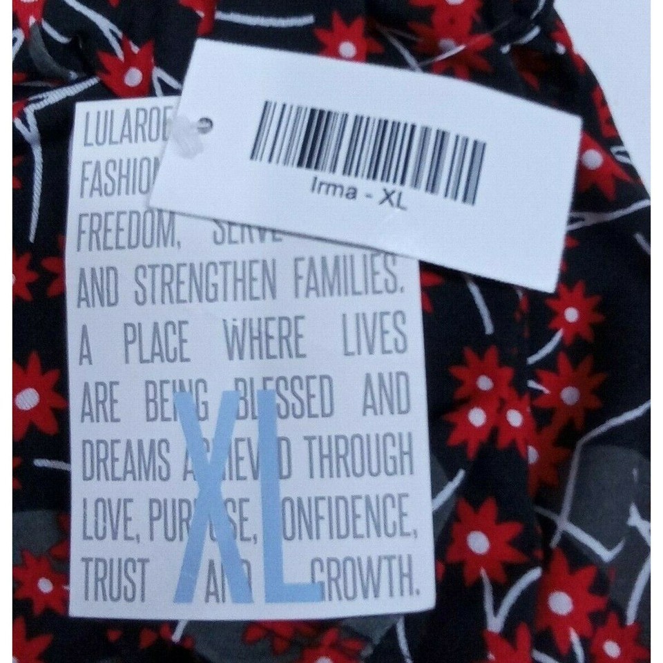 NWT Lularoe Irma Tunic Black With Red & Gray Floral Designs Size XL