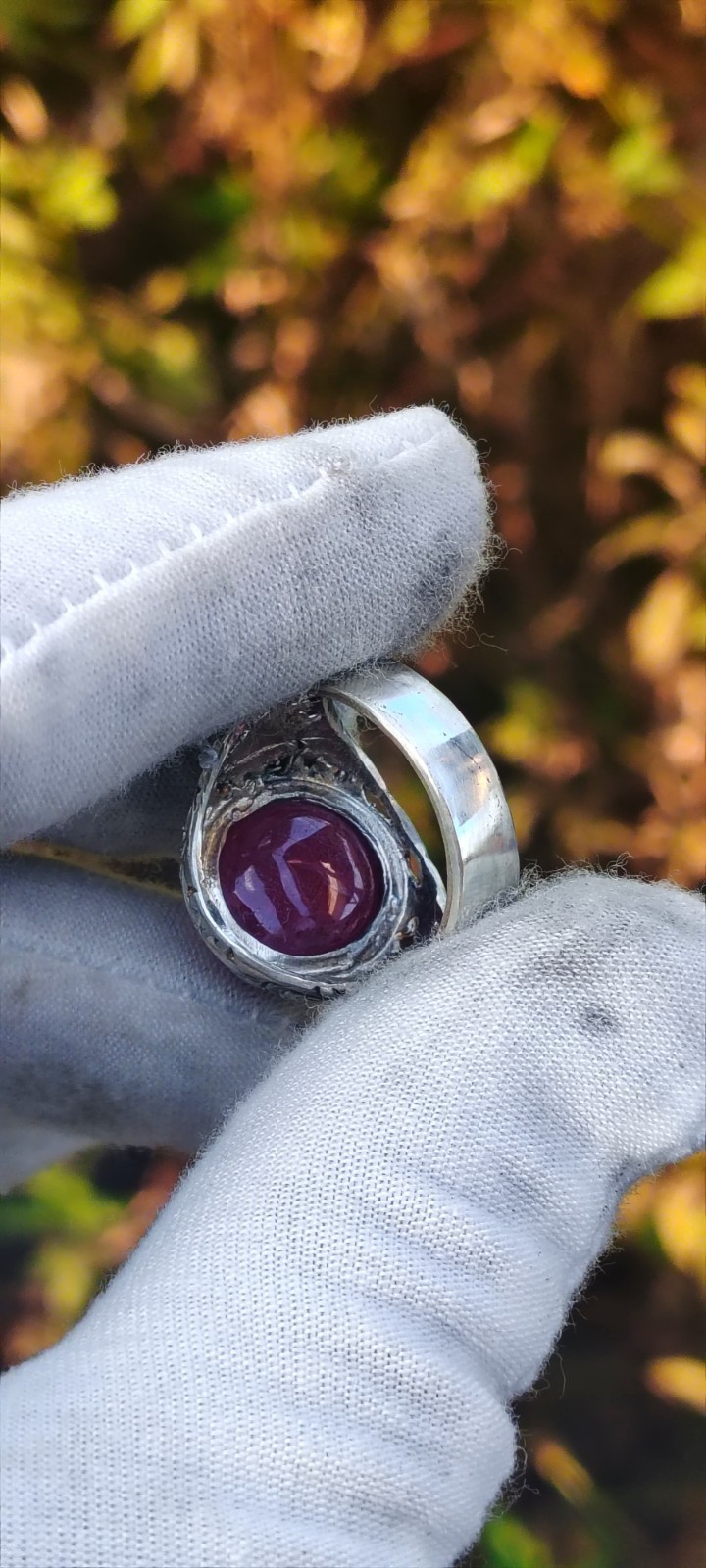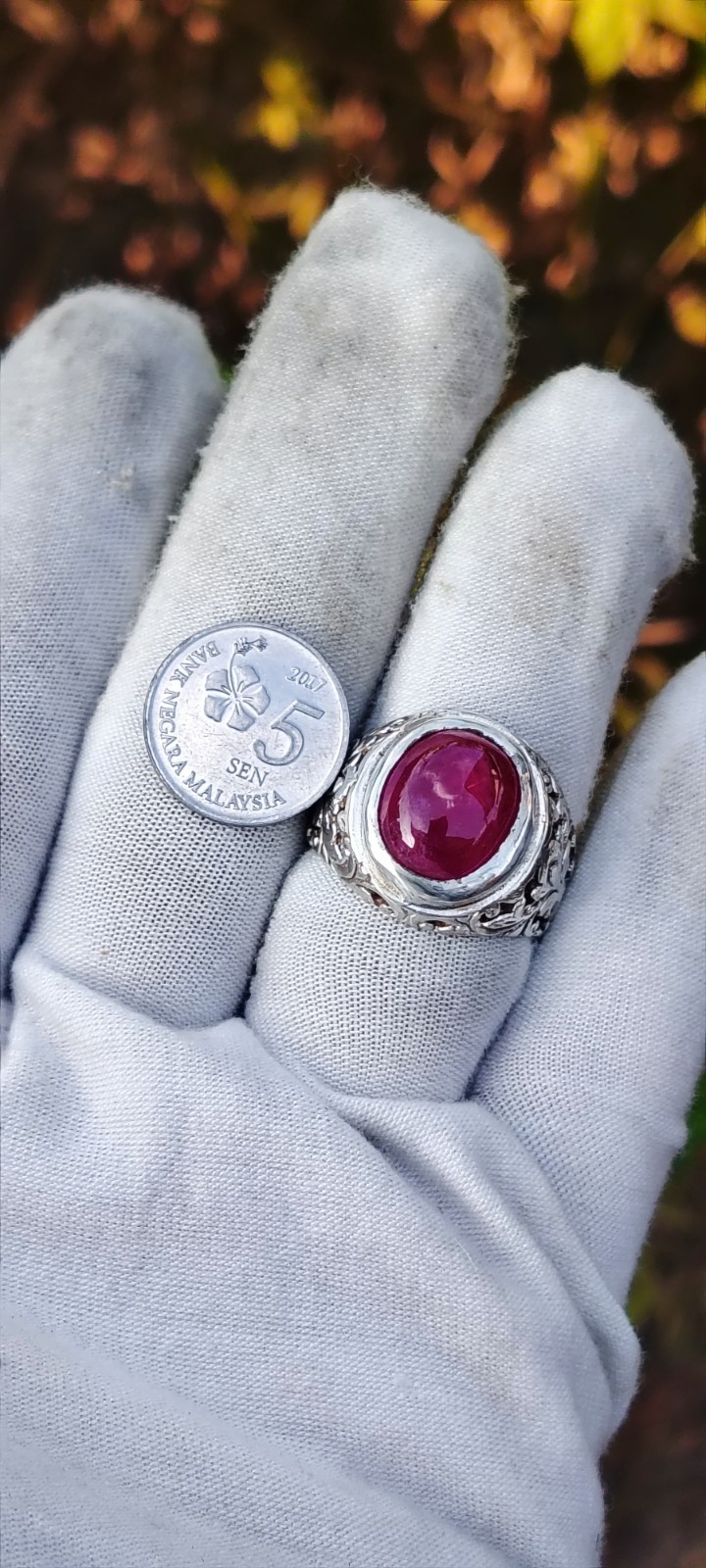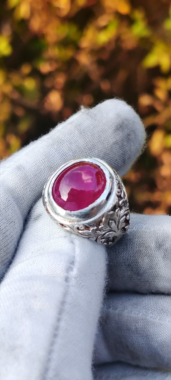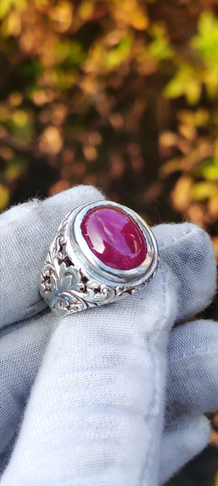Natural Mozambique Ruby 15.10 carat silver Java carved round style ring