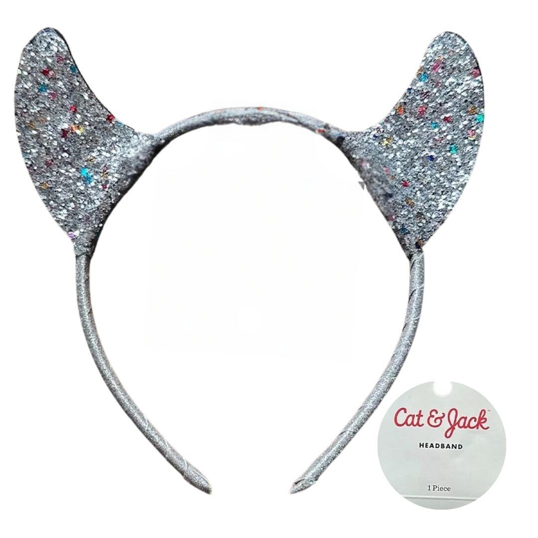 Add a pop of sparkle to any outfit with this Cat Jack silver glitter ear headband, perfect for costumes, dress-up play, parties, or everyday flair. New with tags and ready to shine!