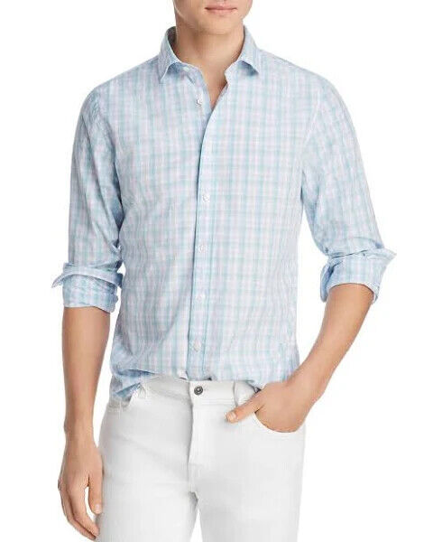 The Men's Store Premium Cotton Plaid Regular Fit Shirt Island Blue-Size Small