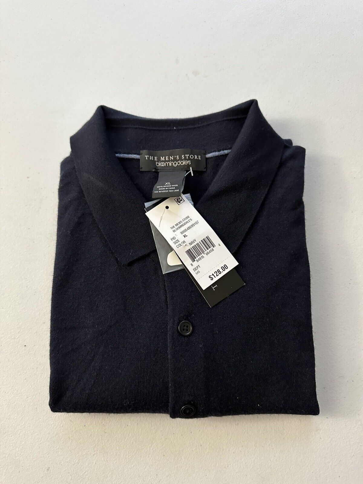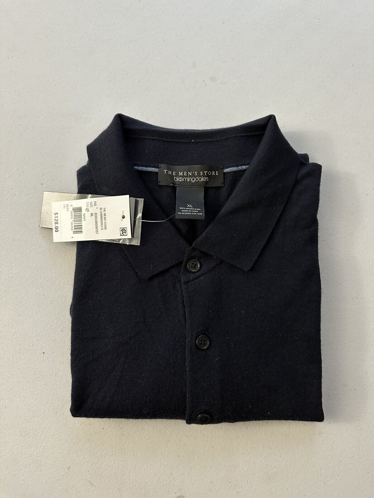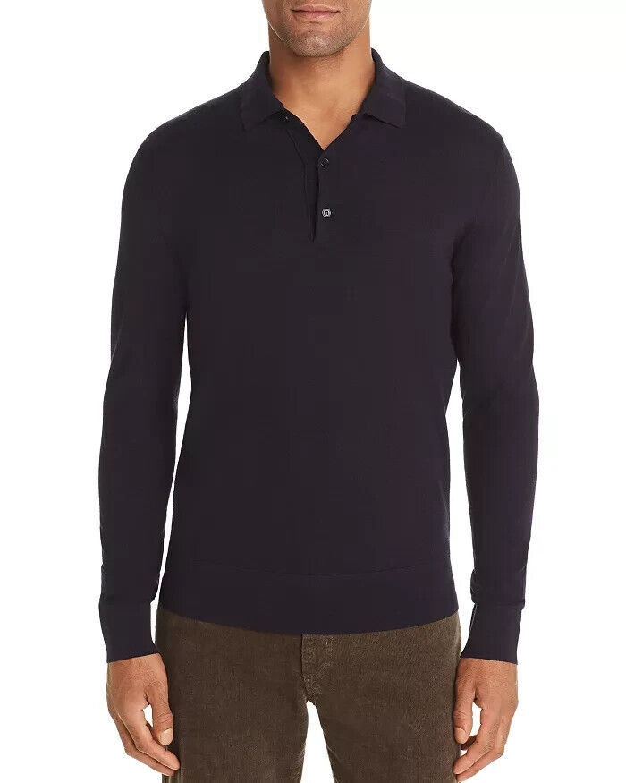 Major Department Store Designer L/S Wool Knit Classic Fit Polo Shirt Navy-XL