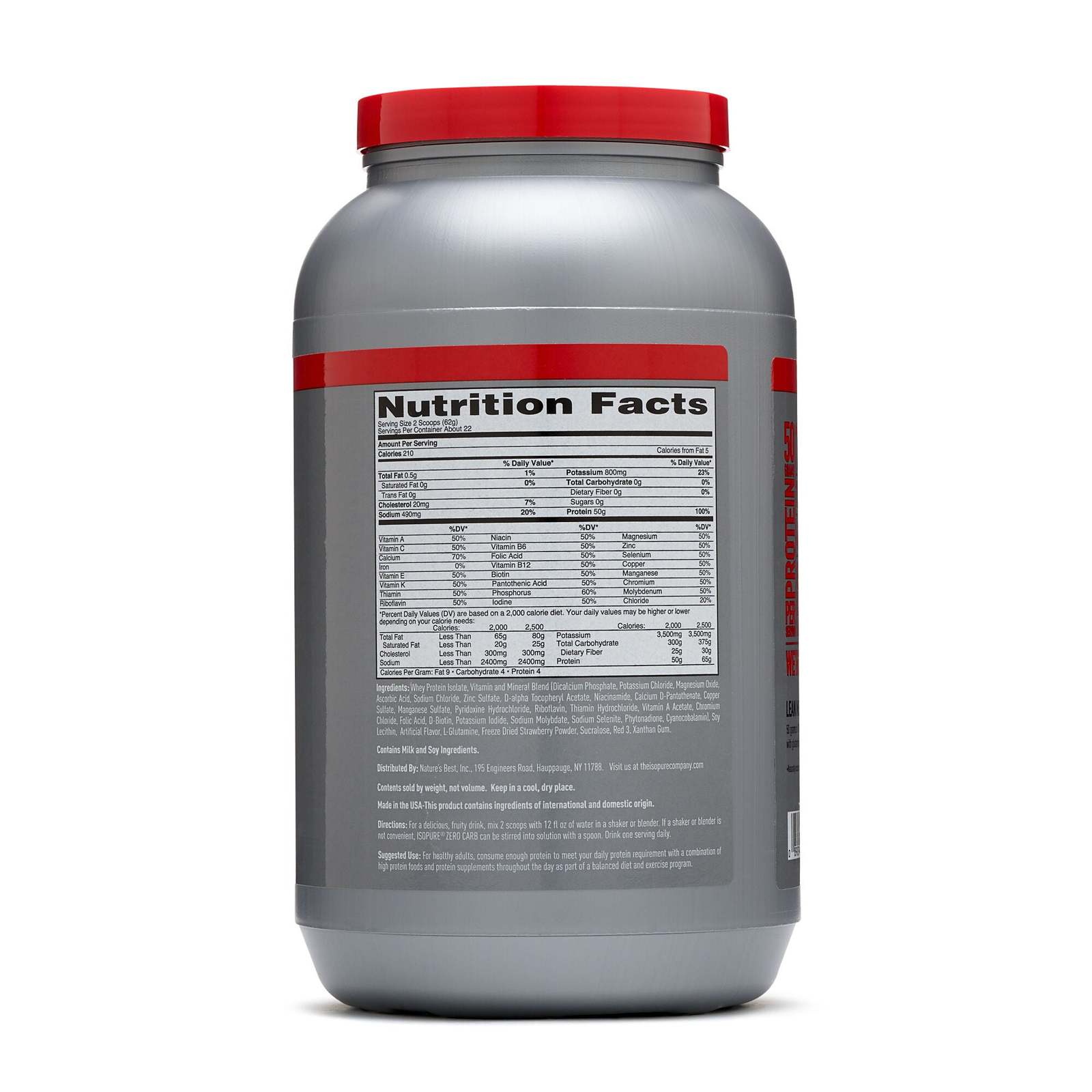 ISOPURE ZERO CARB - Strawberry Cream contains 25g grams of 100% pure whey protein isolate and not carb in sight. And still with naturally occurring and added glutamine and added vitamins, but not lactose or fillers.