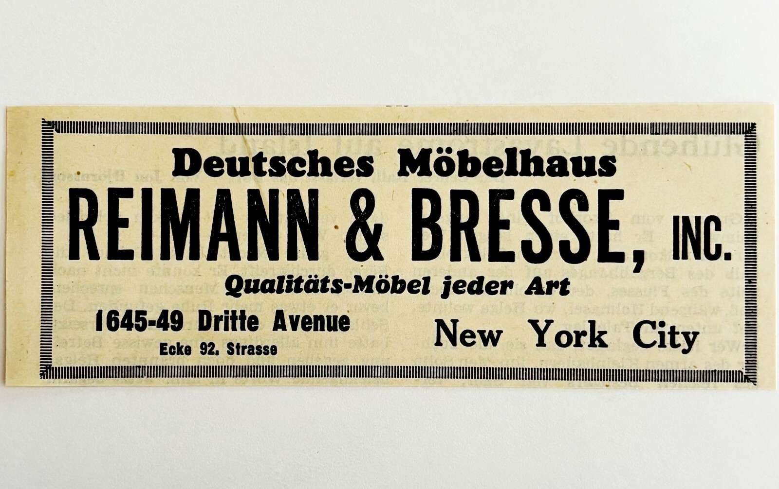 1945 WW2 German-USA Furniture Store Advertisement Reimann & Bresse Inc NYC C94C