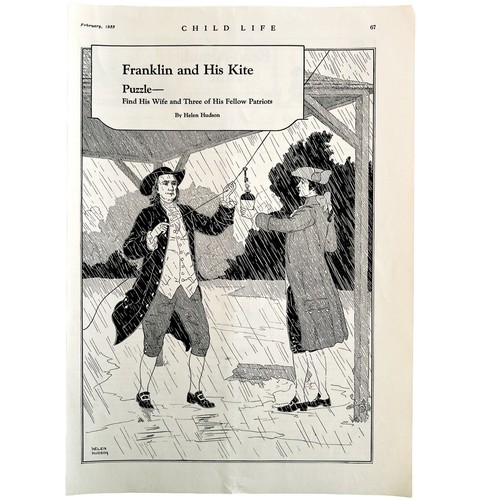 Benjamin Franklin Puzzle Kite 1933 Woodcut and 50 similar items
