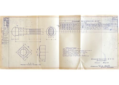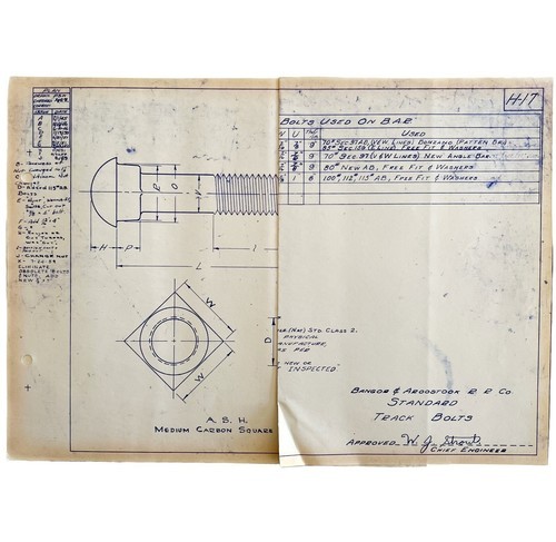 1951 Railroad Bangor Aroostook Original Blueprint Track Bolts H17 DWDD11