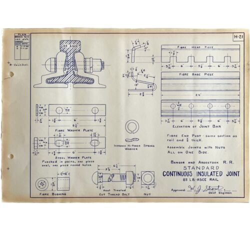 1950 Railroad Bangor Aroostook Continuous Insulated Joint Blueprint H21 DWDD14