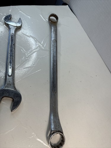 This product is a set of two open-end and closed-end wrenches made by S-K Tools. The wrenches are designed for SAE measurements and have a size of 15/16 in - 1 in. The product is manufactured in the United States and comes with an unspecified length warranty. The brand of the open-end wrench is Craftsman and the manufacturer part number is 3032.