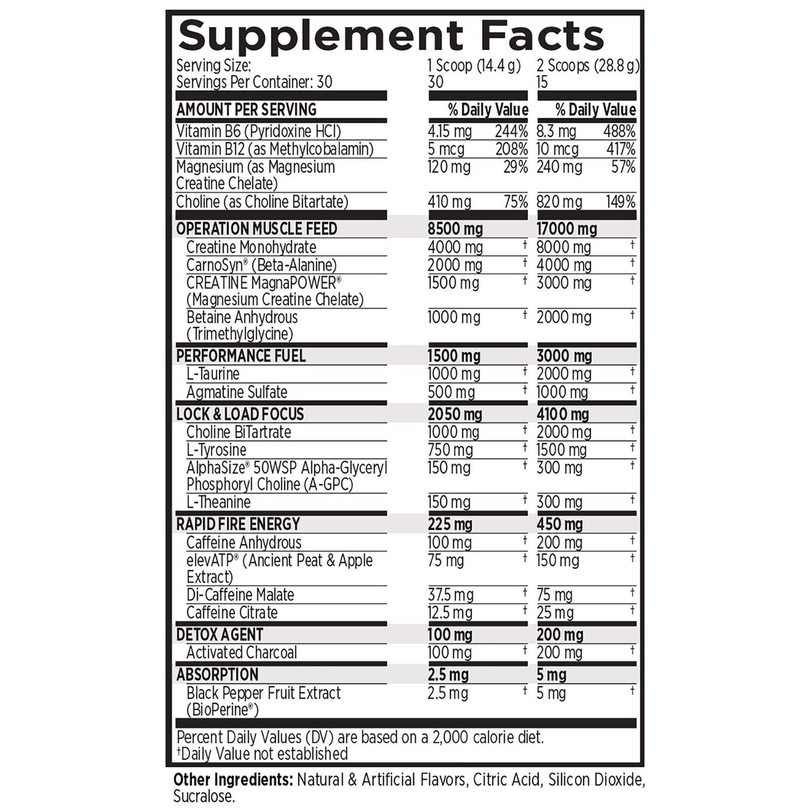 Theanine and Tyrsoine work together to create razor-sharp focus, and keep your mind and body locked loaded during training.*