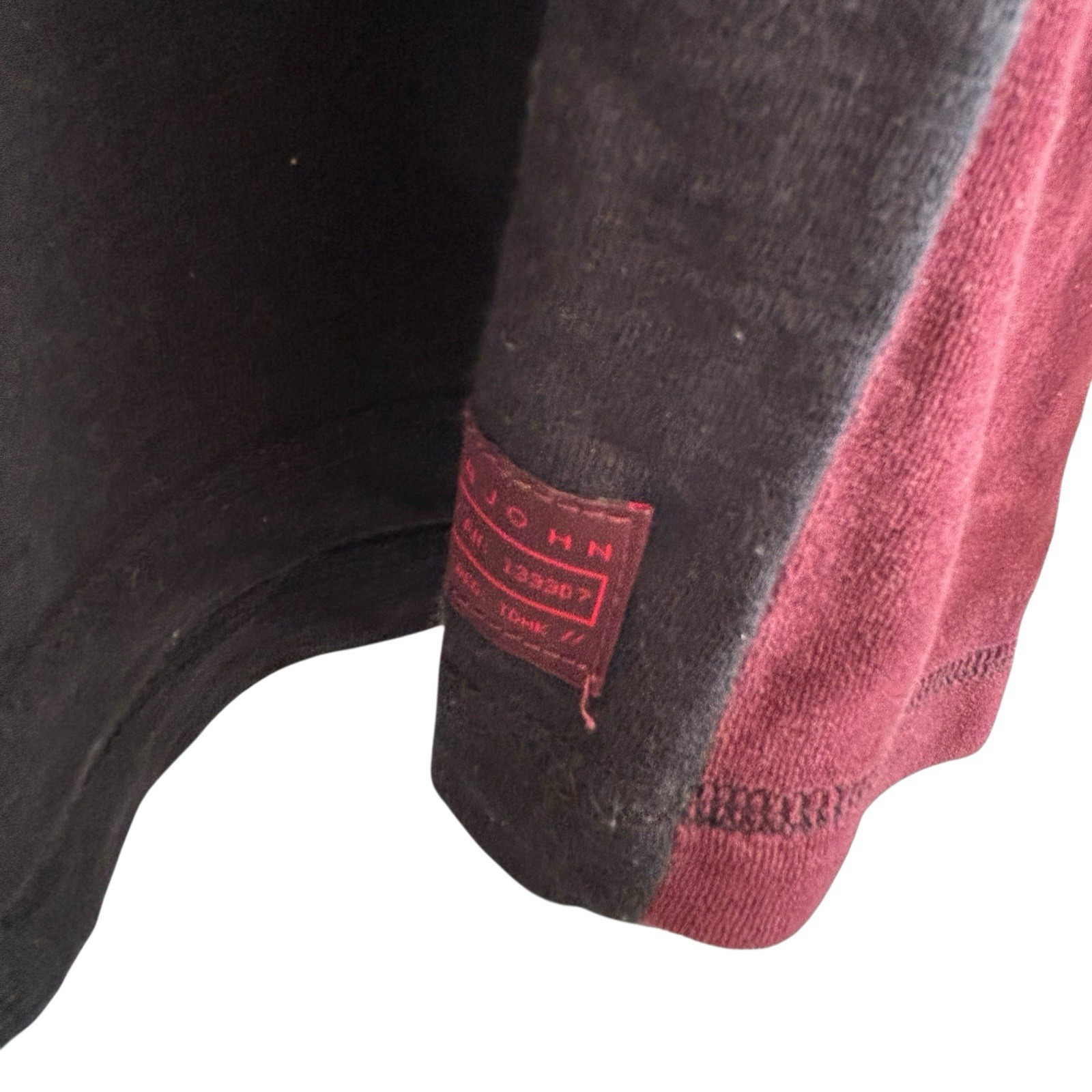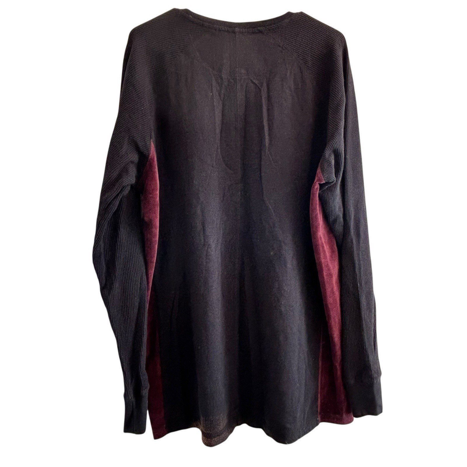 Sean John Henley Long Sleeve Shirt Velour Trim Embroidered XL Black Burgundy Y2K