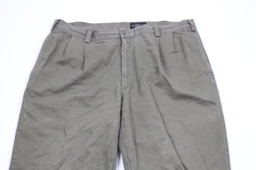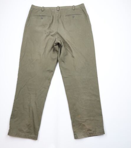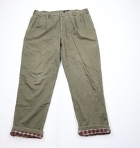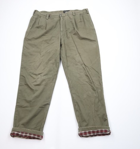 Vtg 90s Eddie Bauer Mens 40x34 Faded Flannel Lined Wide Leg Chino Pants Green