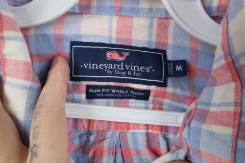Vineyard Vines Mens Medium Slim Fit Whale Linen Blend Collared Button Down Shirt