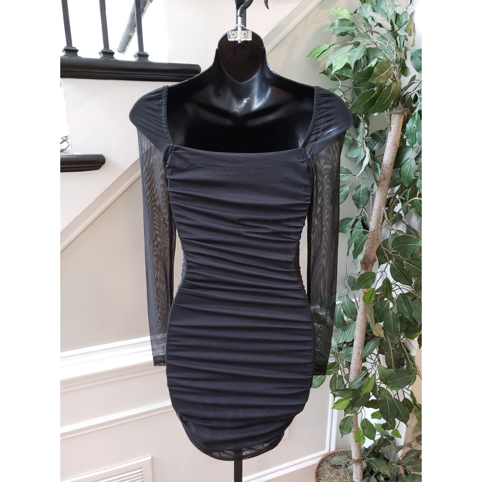 Princess Polly Dress Women 0 Black Mesh Long Sleeve Ruched Bodycon Mini Sexy