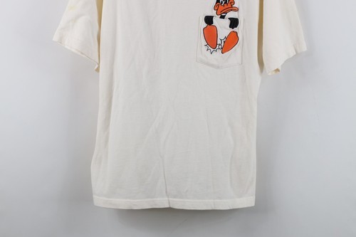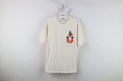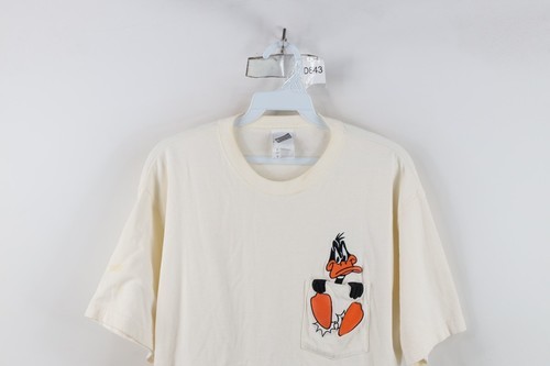 Vintage 90s Looney Tunes Mens Small Distressed Daffy Duck Pocket T-Shirt Cream