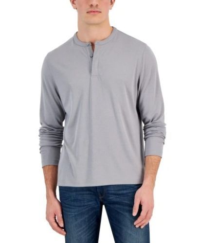 Alfani Henley T-Shirt Alfatech Men's Large Storm Grey Stretch Long Sleeve