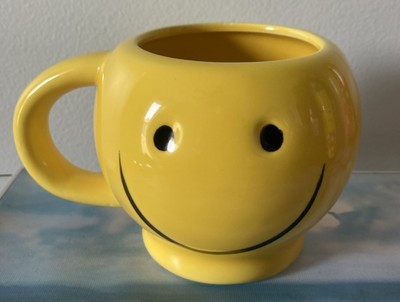 Smiley Face Emoji Happy Coffee Cup Yellow Ceramic Mug 3 1/2"