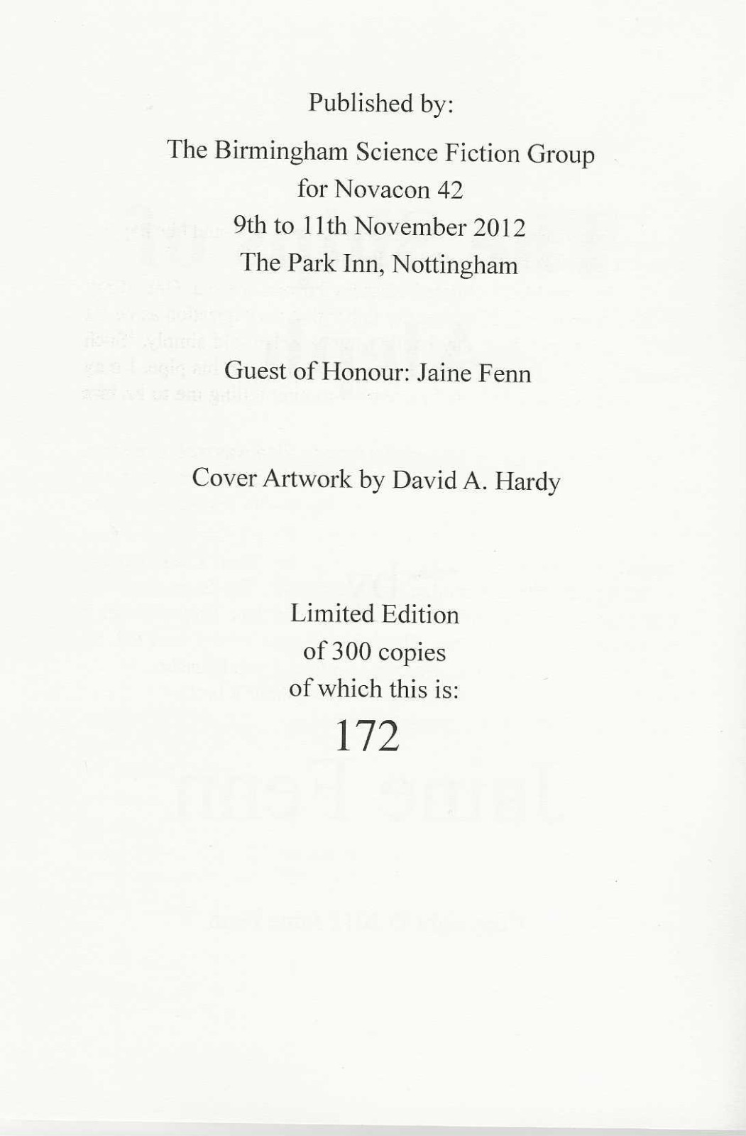 (Nottingham: The Birmingham Science Fiction Group for Novacon 42, 9th to 11th November 2012).