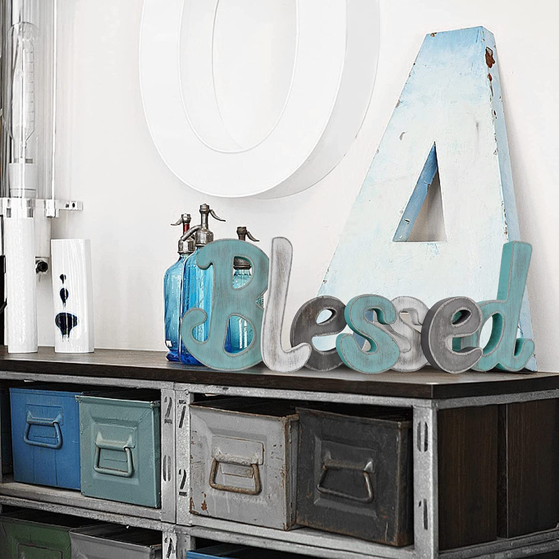 Rustic Blessed Decor Sign Decorative Word Sign Wood Letters Blessed Sign, Decorative Wooden Block Word Sign Freestanding Wooden Letters Tabletop Sign DecorWOODEN WORD SIGN: Block word for decor is made of premium MDF material painted in classic multicolor color. Sturdy and durable. Simple and sleek cutout word decor offers a subtle enhancement to fireplace, a perfect mantel sign decor or wall decor.FREESTANDING TABLETOP WORD DECOR: Wooden sign for home decor is a great decorative accent piece to display on any tabletop, desktop, book case, shelf, mantel, cabinet or counter top. You can also hang the word sign on the wall. Create a touch of happiness with this family tabletop word sign.VERSATILE BLESSED LETTERS DECOR: Blessed wood sign for home decor blends seamlessly with any modern, farmhouse, country, vintage or rustic design room style. You can also paint the rustic blessed sign into any color you like to match your home style better.WORD SIGN DECOR GIFT: Decorative blessed sign makes a warm and nice gift. It?s a great house warming gift, birthday gift, holiday gift for friends, family, colleagues and loved ones. Simple design matches with any room style.PACKAGE: 1 X Rustic Blessed Wood Sign