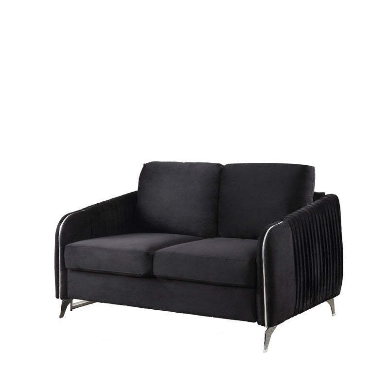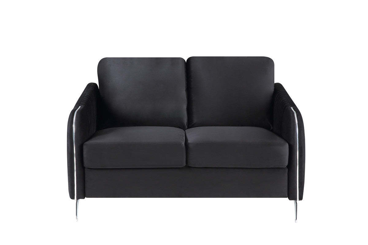 Hathaway 54" Black Velvet Modern Chic Loveseat Couch