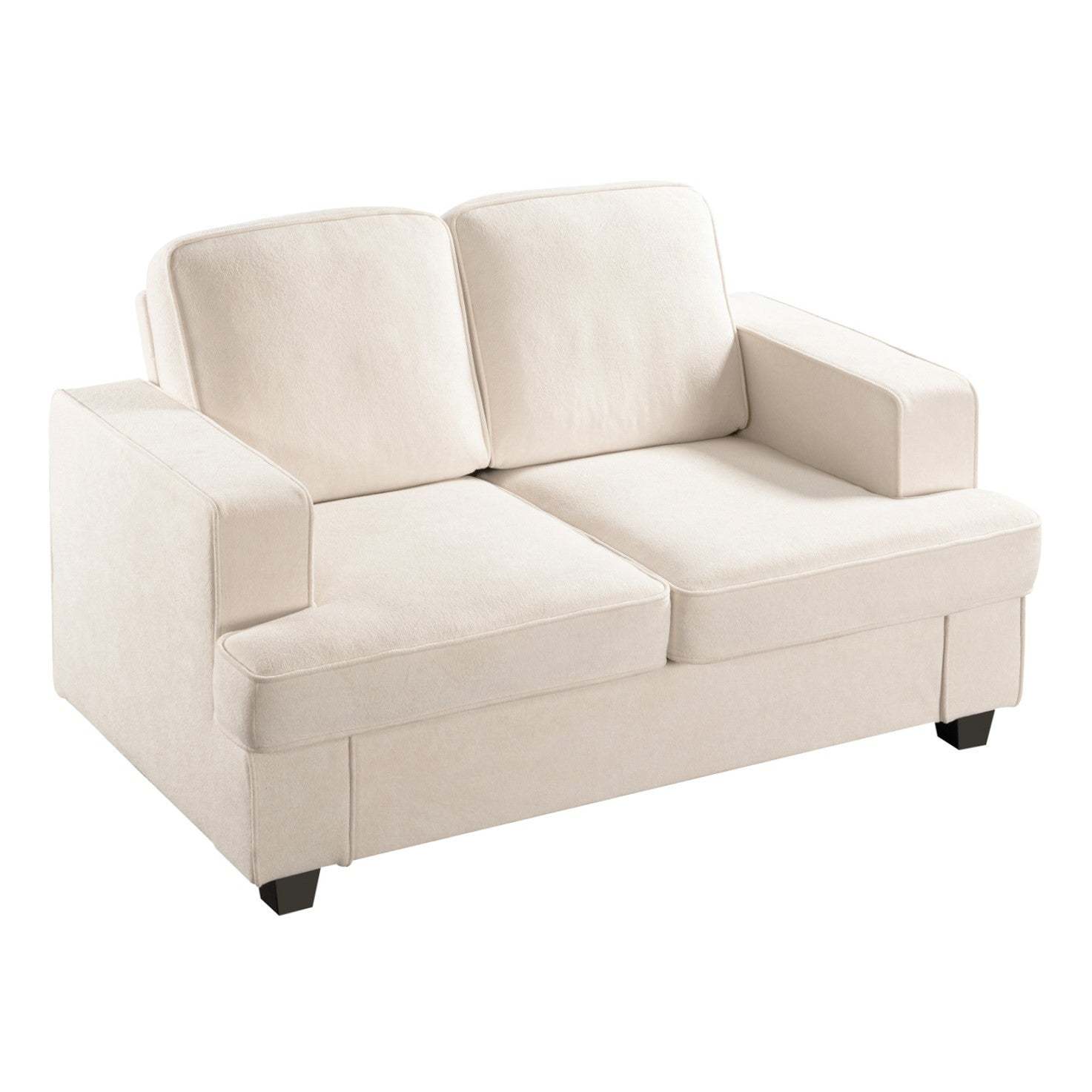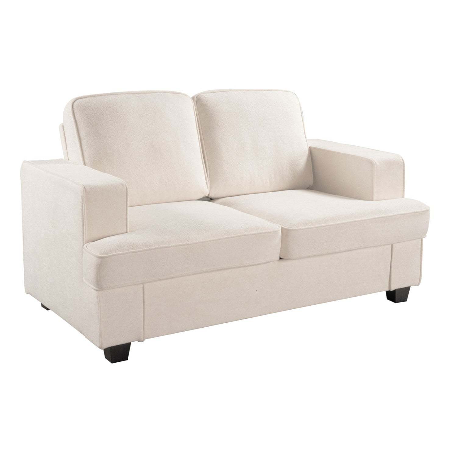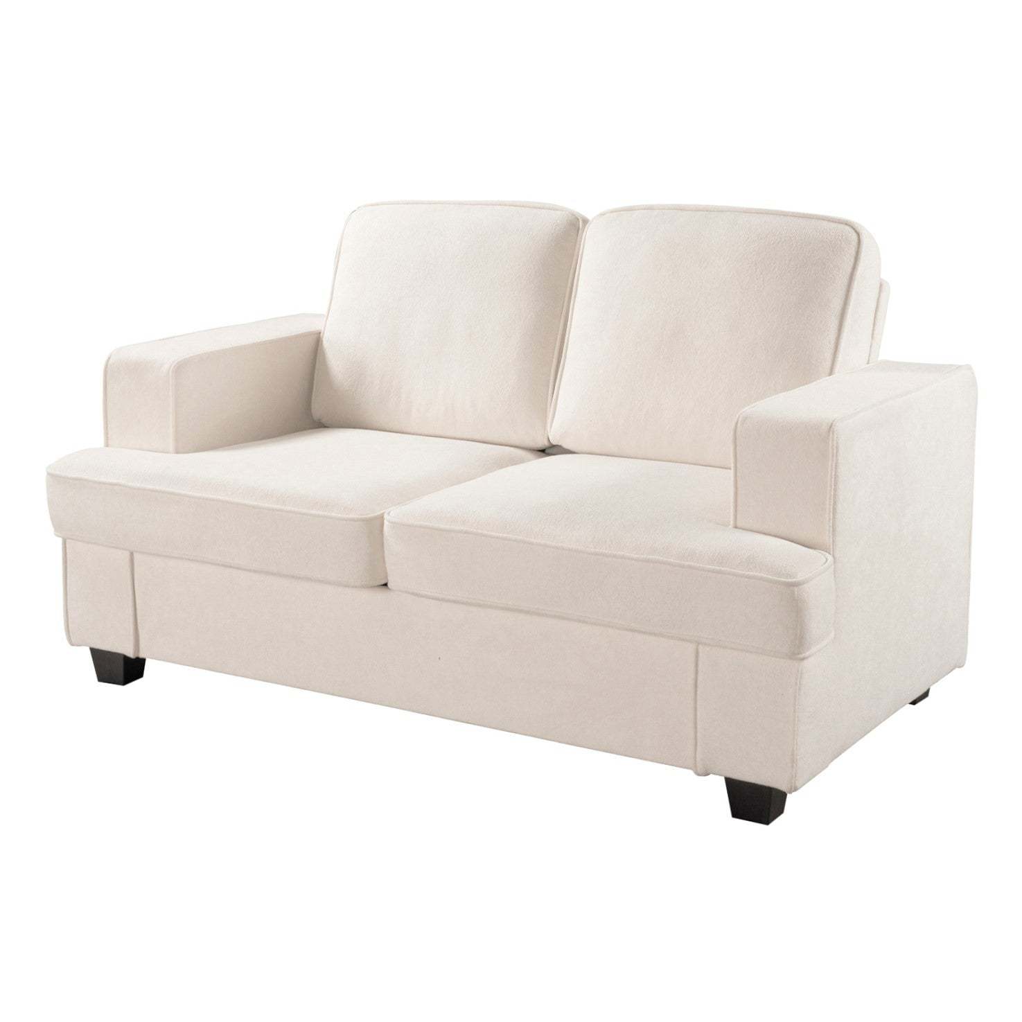 Modern Ivory Velvet Loveseat - 2 Seater Couch, Deep Seating Comfort
