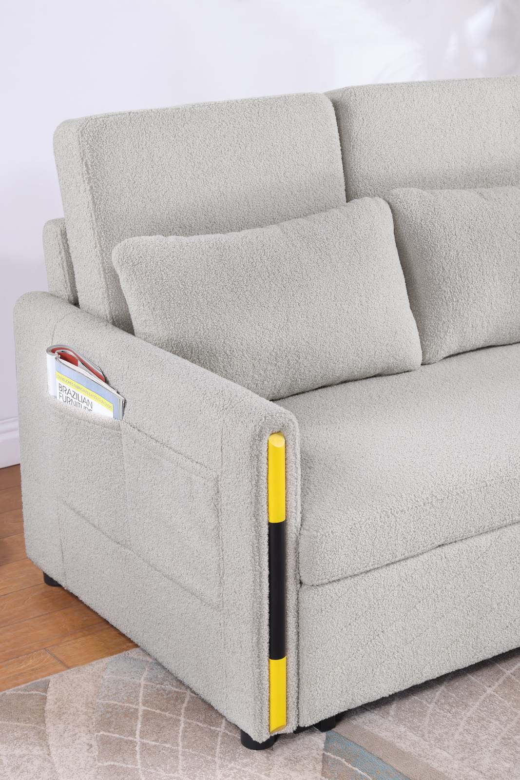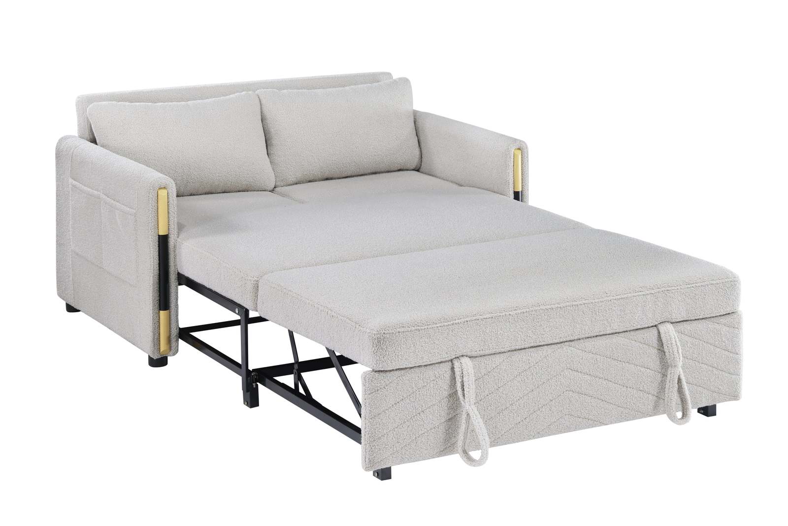 Percy 55.5" Beige Teddy Velvet Sleeper Loveseat w/ Dual-Pull Design