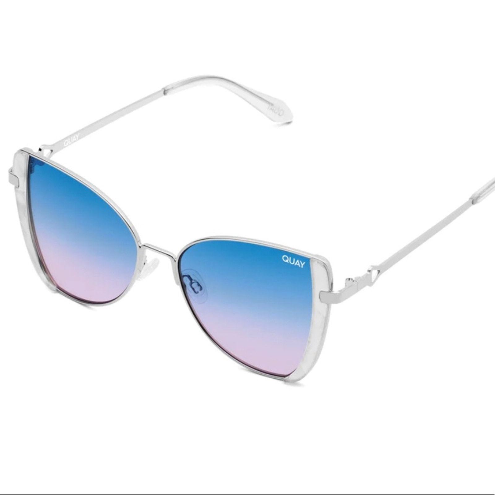 Quay Australia Glow Up Oversized Butterfly Frame Sunglasses Silver Blue Purple