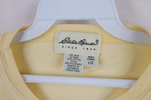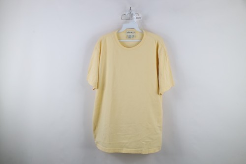 Vtg 90s Eddie Bauer Mens Large Faded Blank Cotton Short Sleeve T-Shirt Yellow