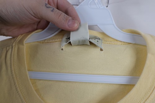 Holes inner collar/back top. Blemish front middle. Color faded