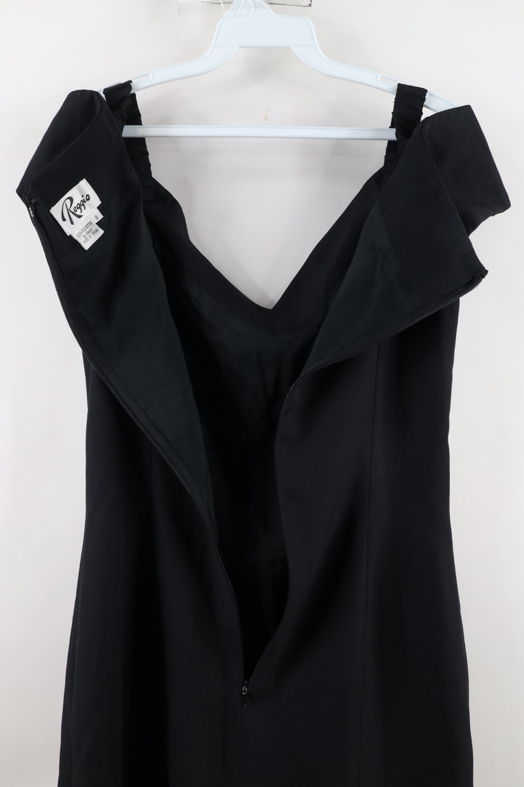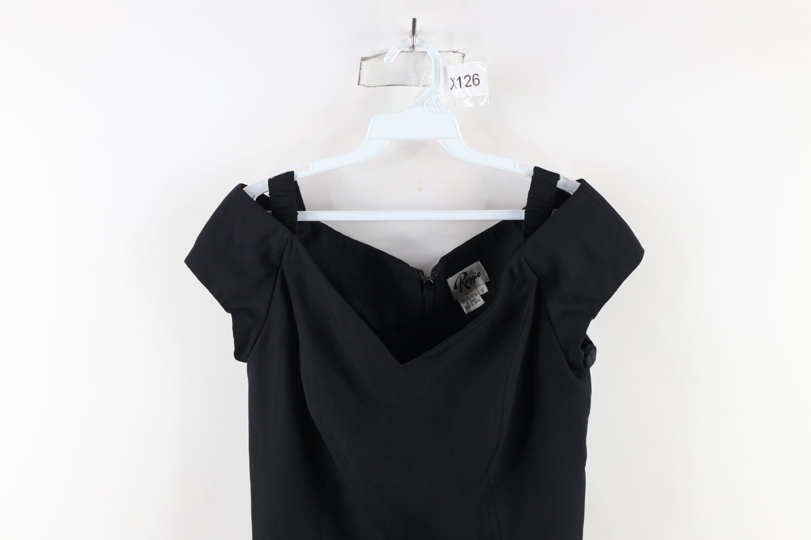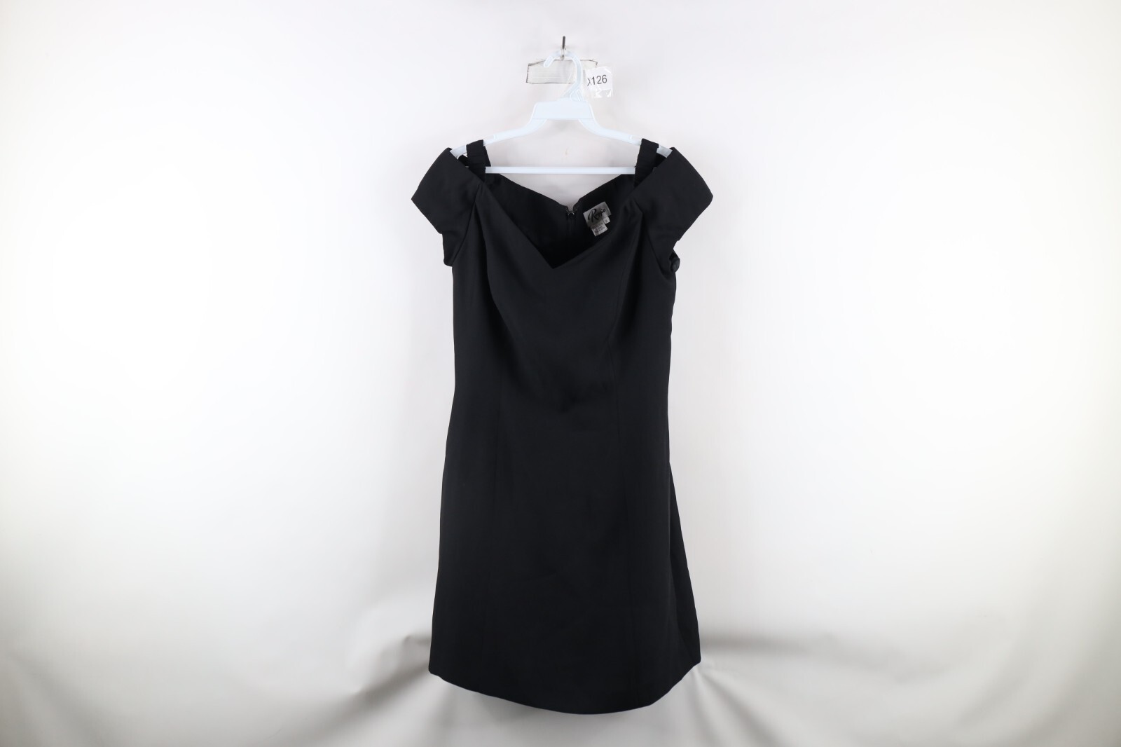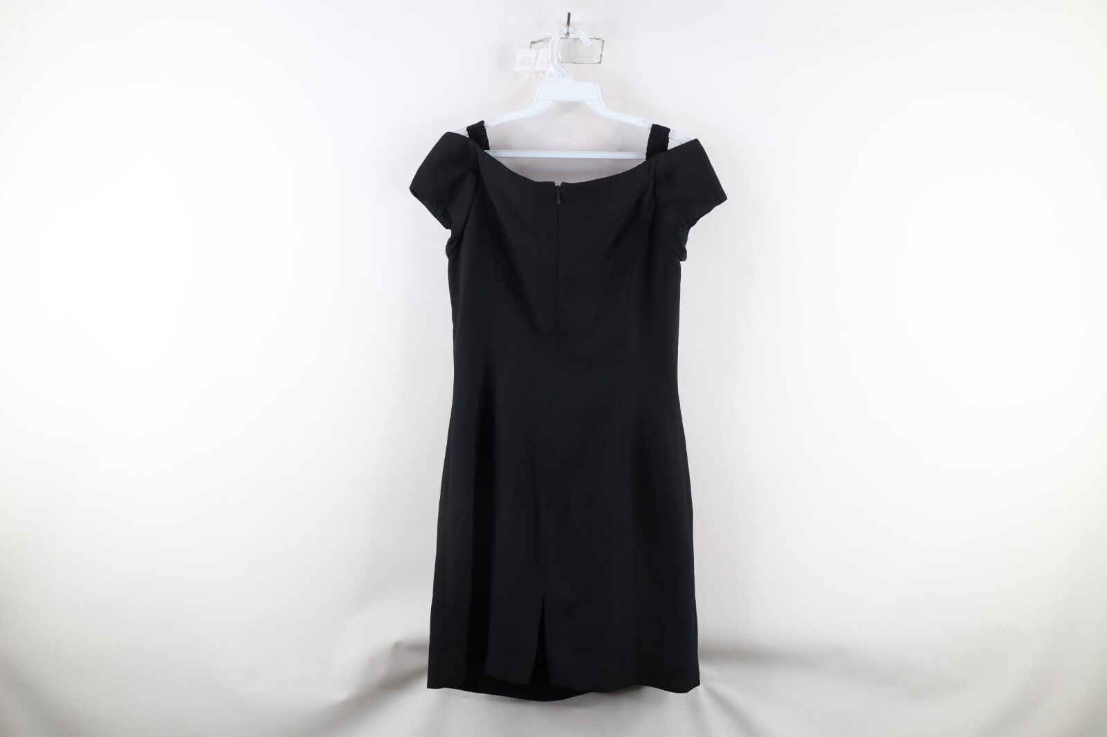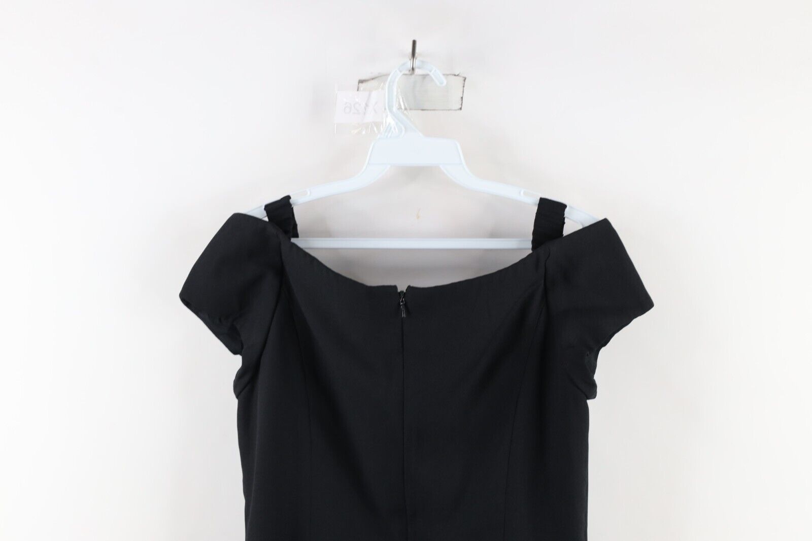 Vintage 80s Glam Womens Size 8 Off the Shoulder Pencil Cocktail Dress LBD Black