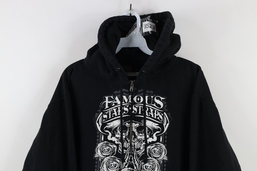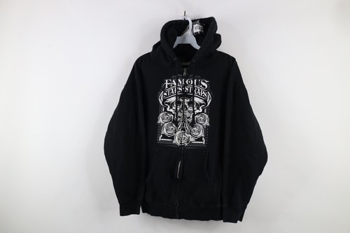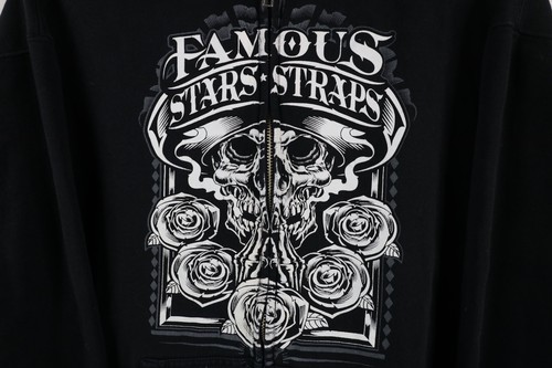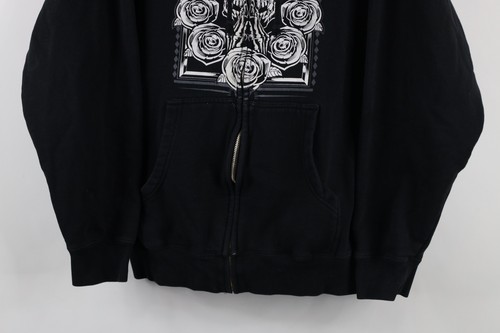 Vintage Famous Stars and Straps Mens Medium Spell Out Skull Rose Full Zip Hoodie
