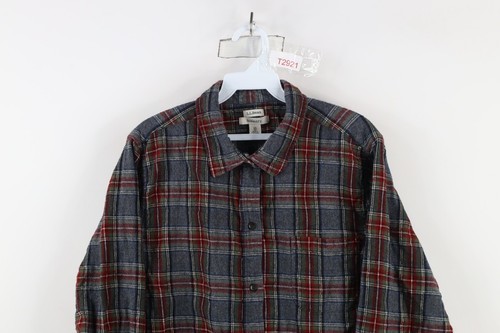 Vintage LL Bean Womens XL Faded Relaxed Fit Flannel Collared Button Shirt Plaid