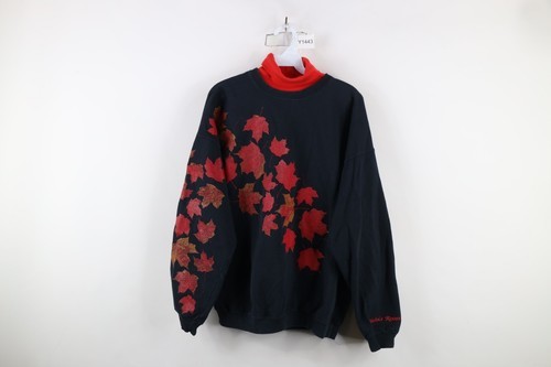 Vtg 90s Art Unlimited Womens L Nature Leaf All Over Print Turtleneck Sweatshirt