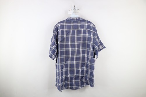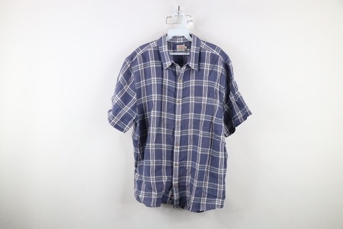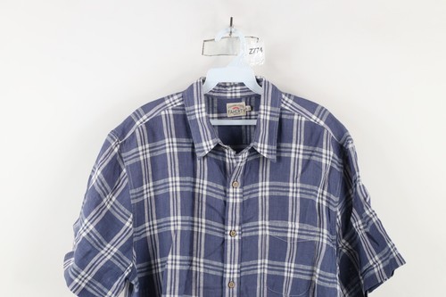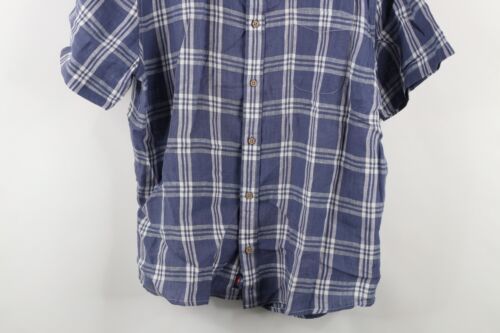 Faherty Brand Mens Size XL Linen Short Sleeve Collared Button Shirt Blue Plaid