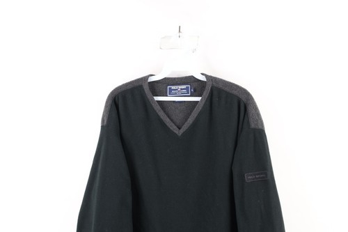 Vtg 90s Polo Sport Ralph Lauren Mens XL Spell Out Fleece V-Neck Sweater Black