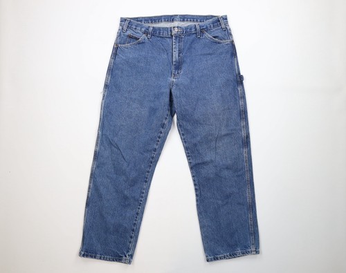 Vintage Dickies Mens 38x30 Distressed Spell Out Carpenter Wide Leg Jeans Blue